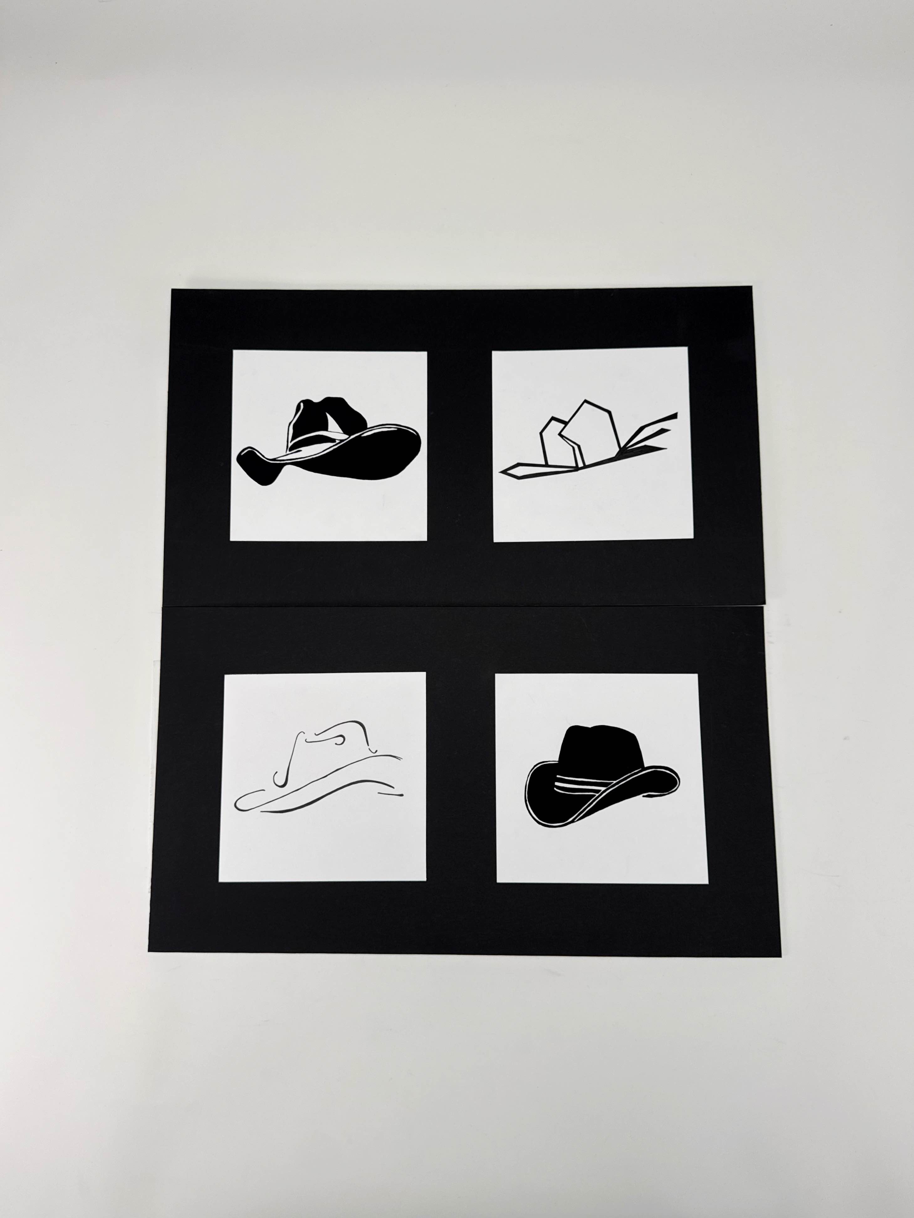 A series of hand-painted 6” × 6” studies exploring the cowboy hat through four approaches: silhouette, geometric abstraction, gestural line, and high-contrast realism. Each variation highlights a different design principle, demonstrating how a single object can be reinterpreted across multiple visual styles while balancing clarity and expression.