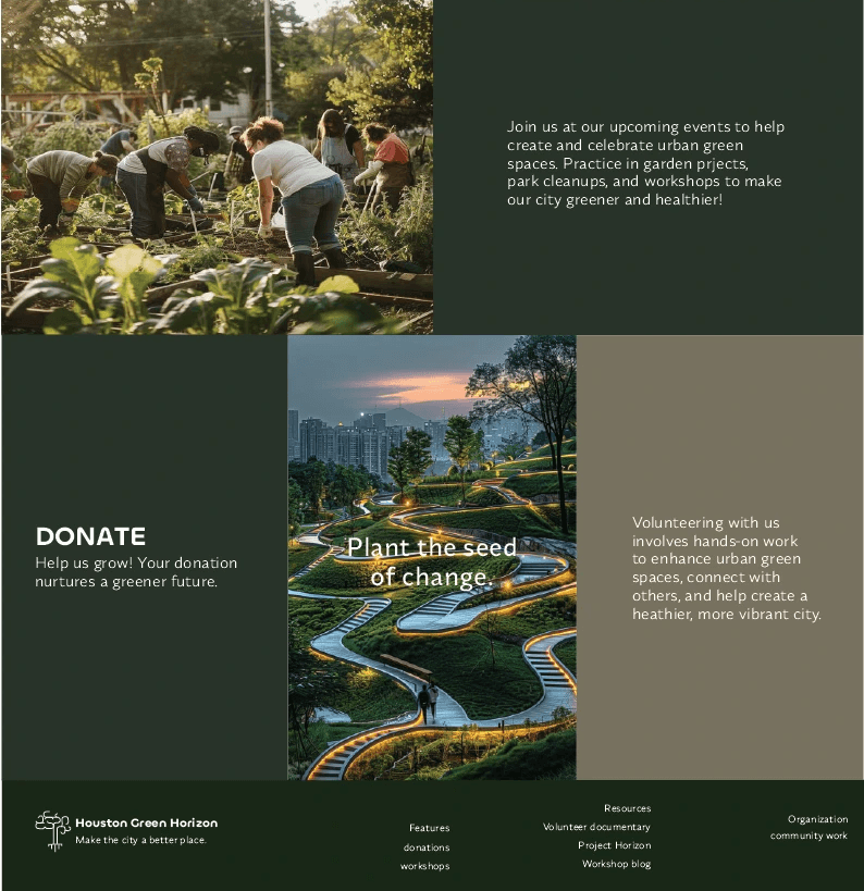 The goal of this project is to design and code a website for a fictional non-profit organization related to the Houston area. Using the grid system made it user friendly to the viewer to be easily directed to any information they will look for.